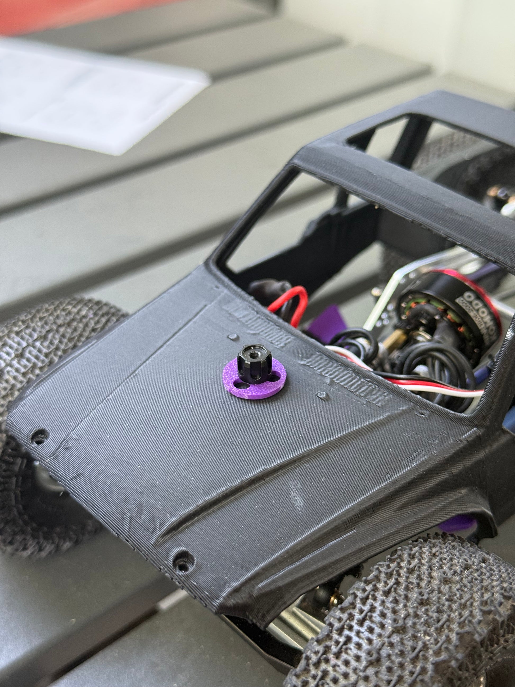 This is a uni mount that uses a 35mm chassis brace inside of the printed portion of the mount . Using a little guy racing parts m2 wheel nut , 1 m2 bolt and two printed spacers