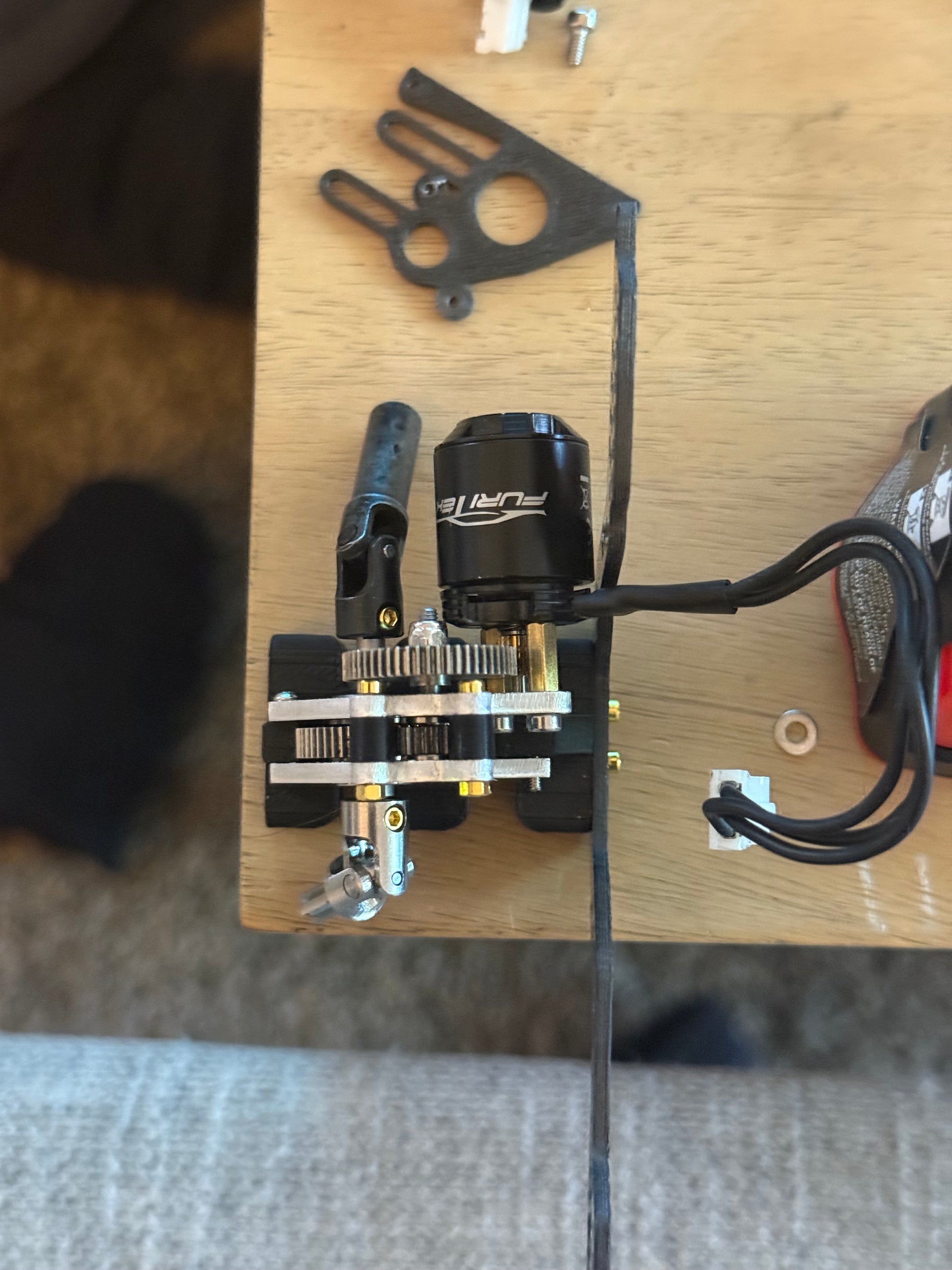 This is a near stock gearing lay out but slightly off to the side featuring a slightly angled transmission first of its kind for the 24s ,This Transmisson is made for a 9mm spacing but that's not the plate spacing / slightly clock the motor to line up the holes. Made for stock gearing / mr24 stock ratio