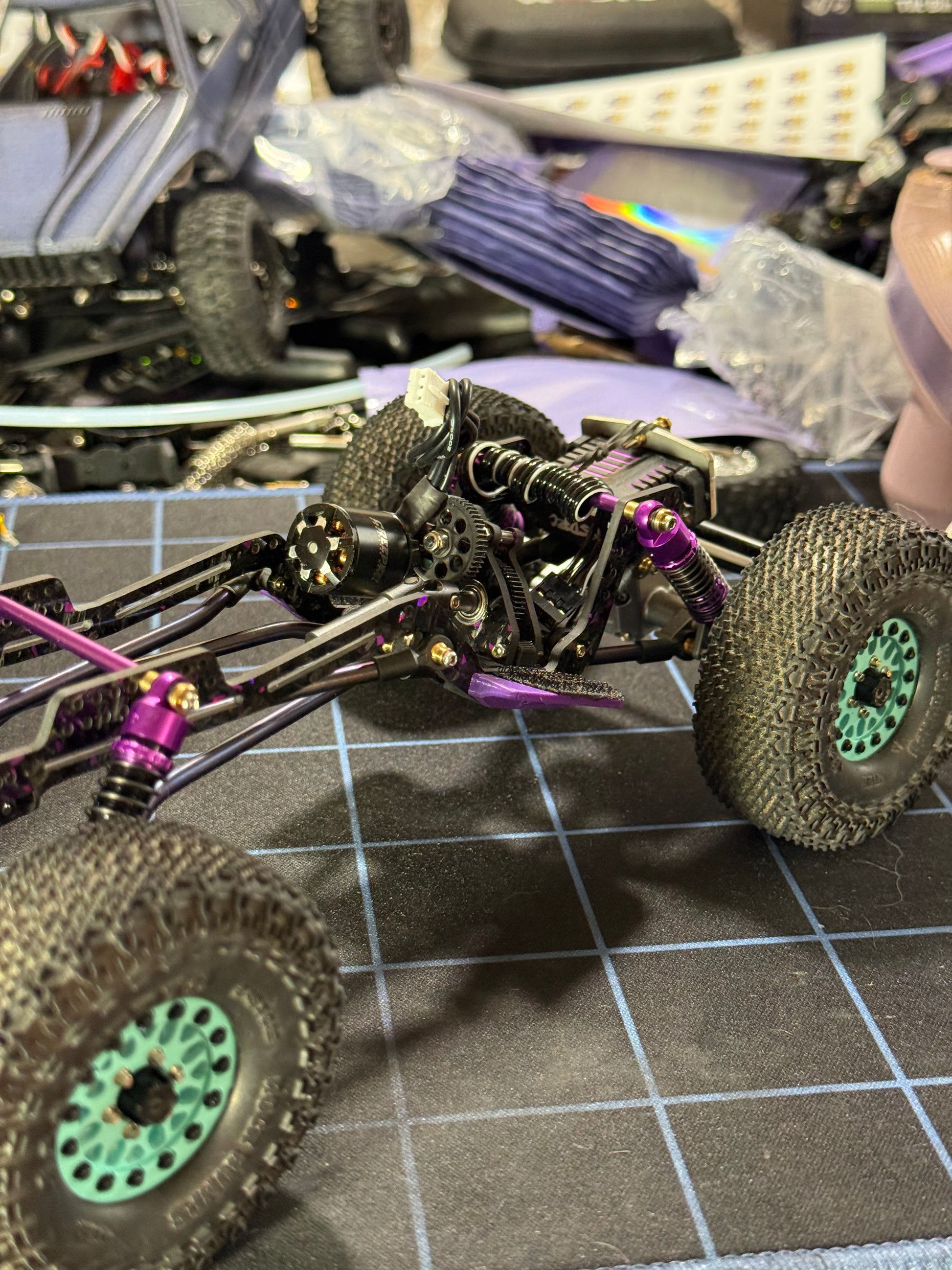 The dragonfly v4 now in forged carbon thanks to @cl_desings based off the v3 but got some improvements , being built around the Dark pulse transmission getting that can nice and low ,rear chassis is designed for easier outboarding of rear links hence the arch / new shock mounting for dead 90s based of what the v3 needed / new angle / and ready to unlock new lines